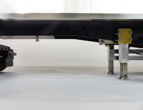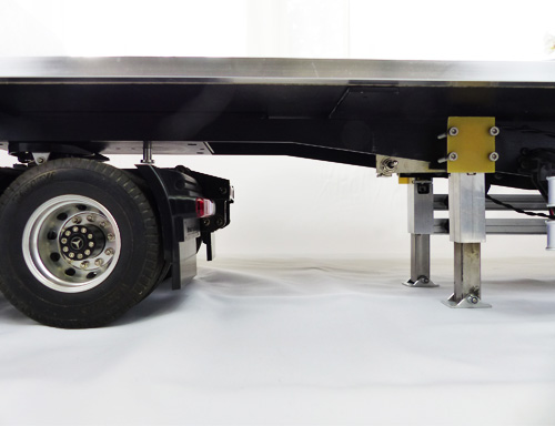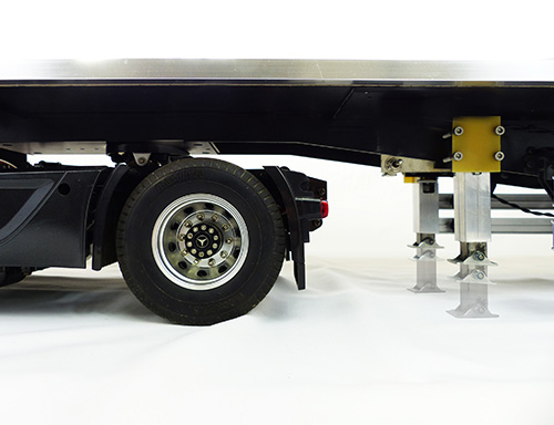 Plus besoin de quiter le poste de pilotage pour atteler et dételer le camion. Les béquilles automatiques liées au système infrarouge Kotronik détectent le camion et lèvent les pieds automatiquement.